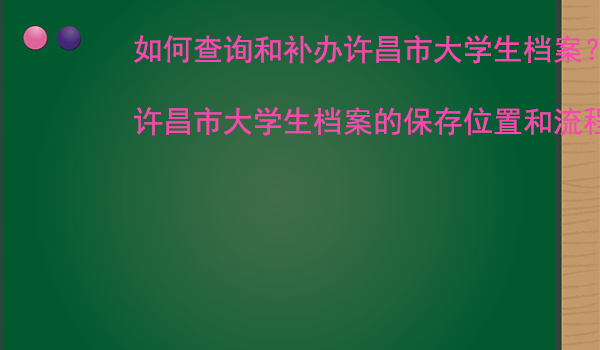 许昌市大学生档案的查询和补办流程